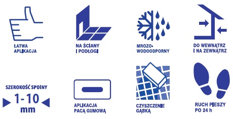 - Temperatura przygotowania fugi oraz podłoża i otoczenia w trakcie prac od +10 °C do +25 °C